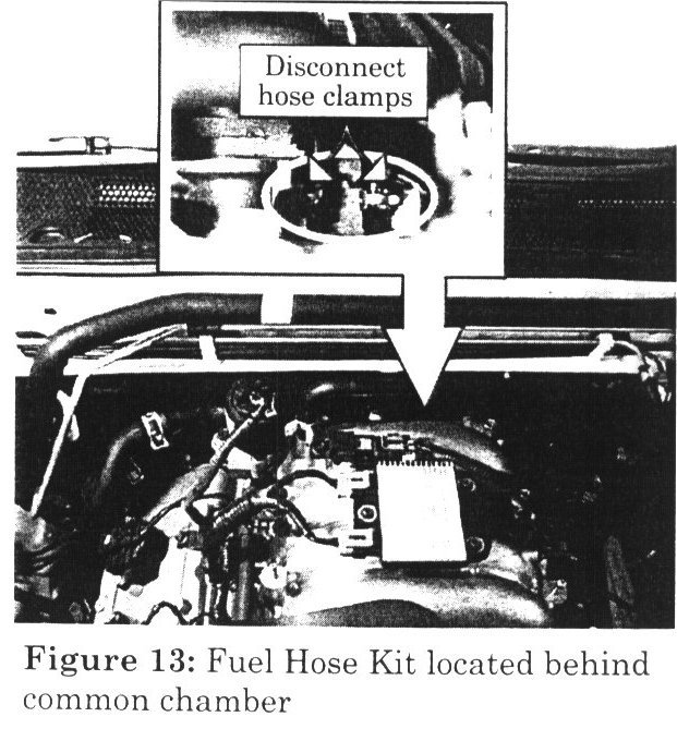 18. Using a 90-degree needle nose pliers, remove both fuel hose clamps behind common chamber (Figure 13).