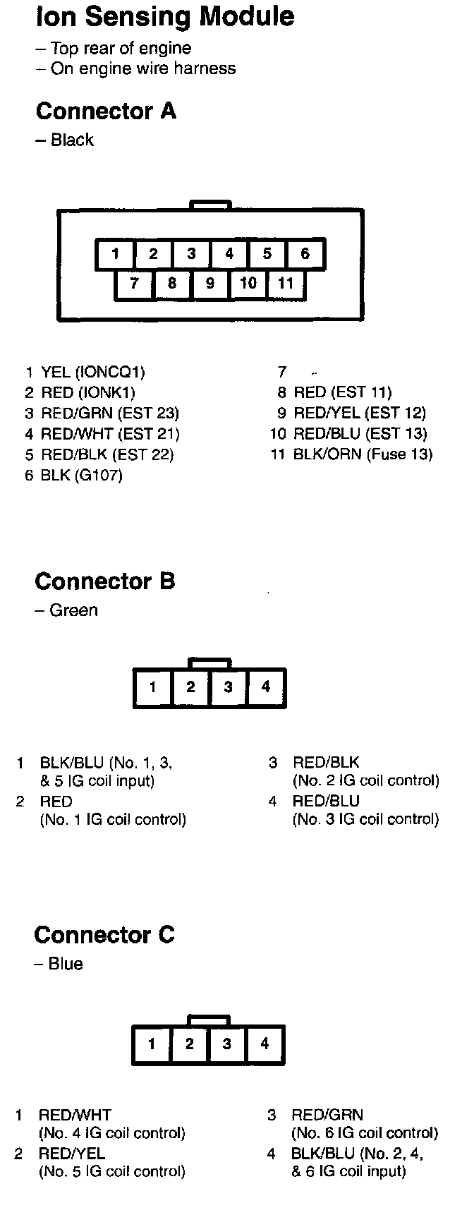 Ion Sensing Module Connectors A - C: