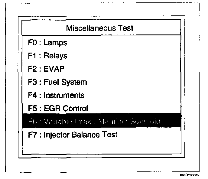 4. Select F6: Variable Intake Manifold Solenoid Test.