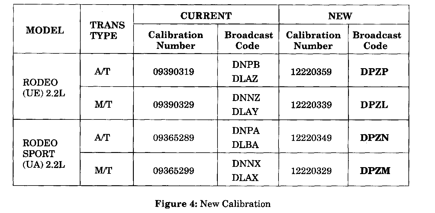 2001 Rodeo (UE) and Rodeo Sport (UA) vehicles with 2.2L HEC Engine