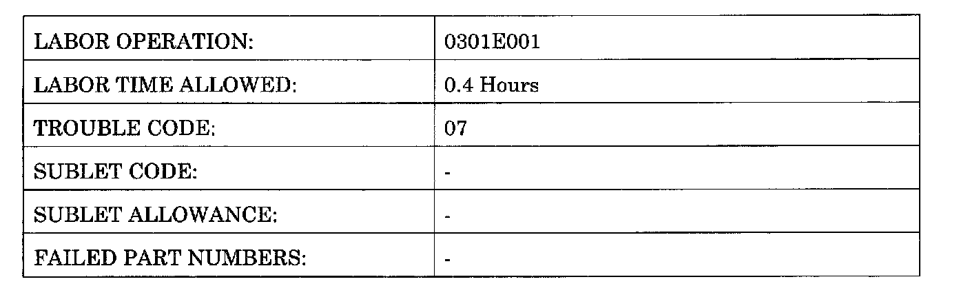 Use Trouble Code 07 (Campaign Bulletin) for this Labor Operation. Labor Time includes administrative time allowance.