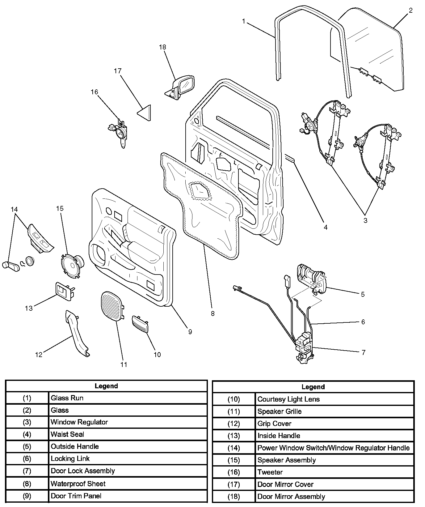 Front Window Regulator, Glass and Glass RunParts Location: