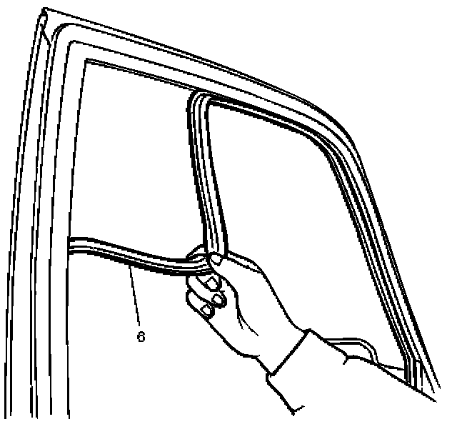 - Pull the glass run (6) out from the door frame groove.
