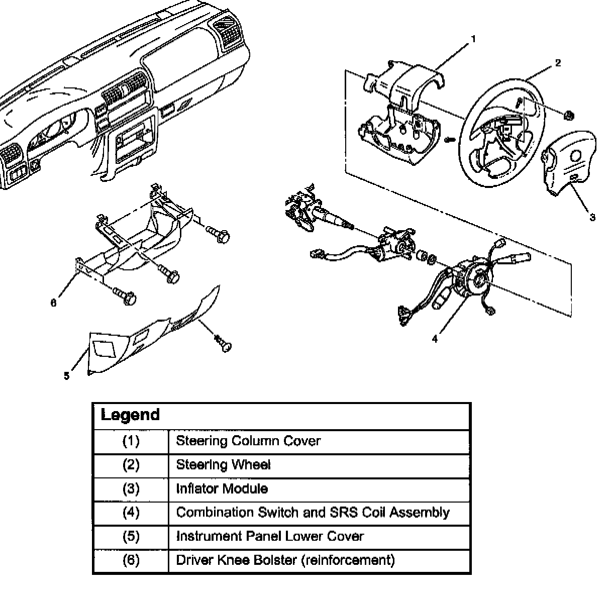 Caution: The wheels of the vehicle must be straight ahead and the steering column in the "LOCK" position before disconnecting the steering wheeL Failure to do so will cause the coil assembly to become unc entered which will cause damage to the coil assembly.