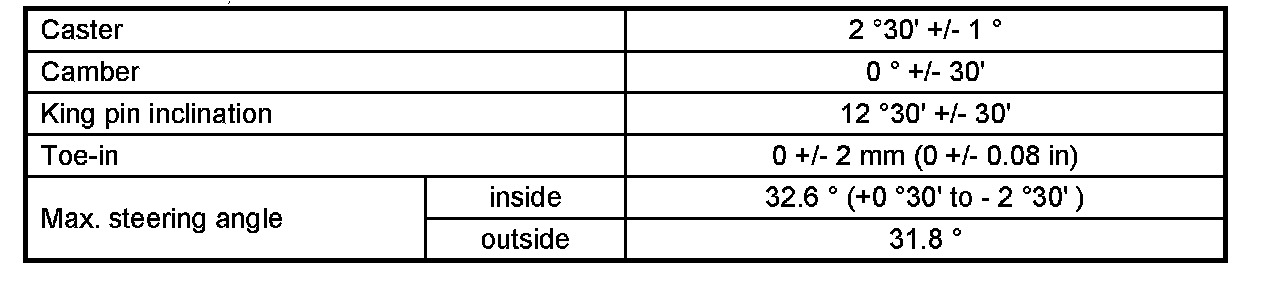Wheel Alignment Specifications