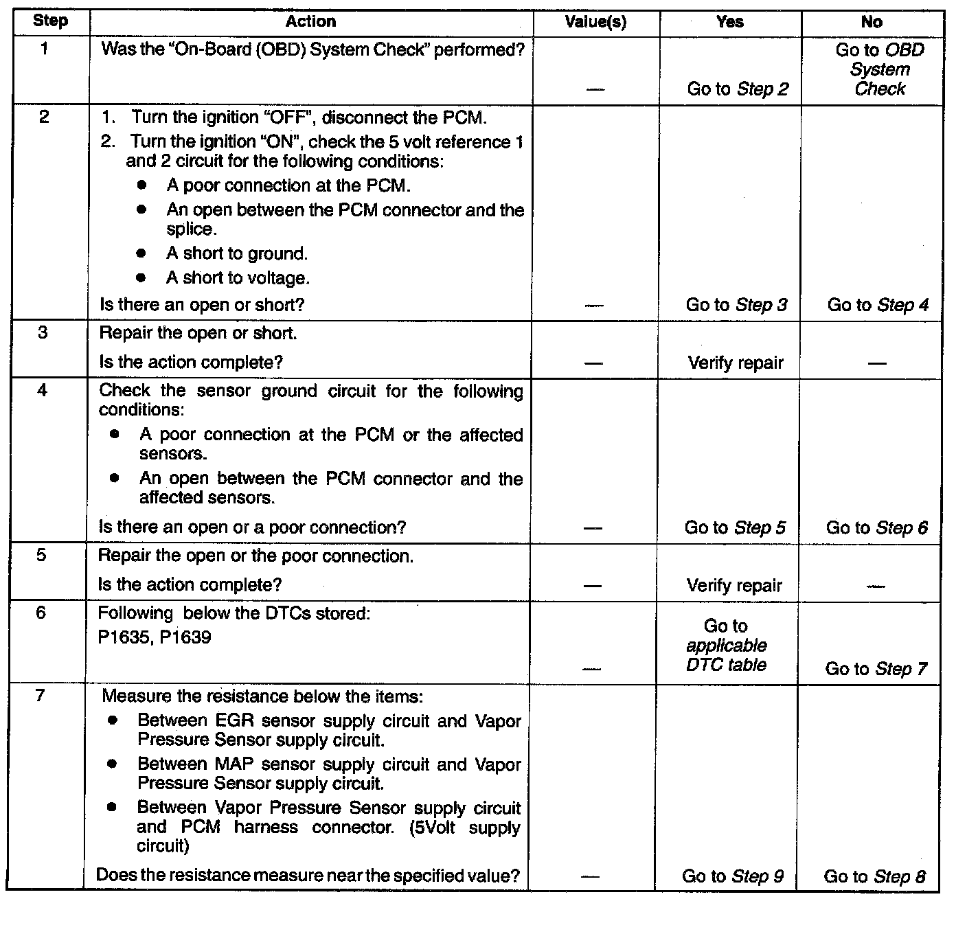 A short to ground in the 5-volt reference A or B circuit will cause one or more of the following DTCs to be set: