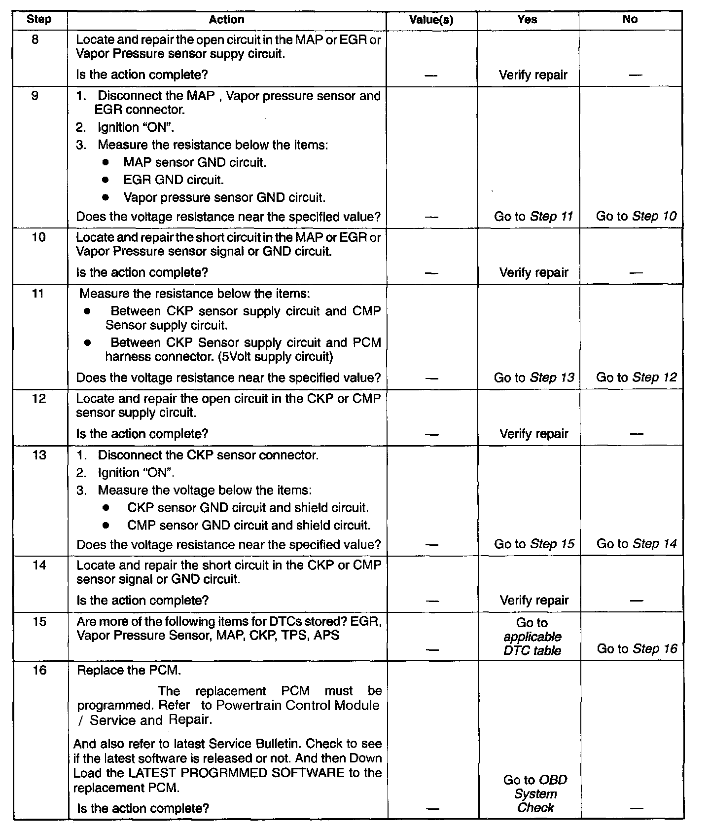 A short to voltage in one of the sensor input circuits may cause one or more of the following DTCs to be set: