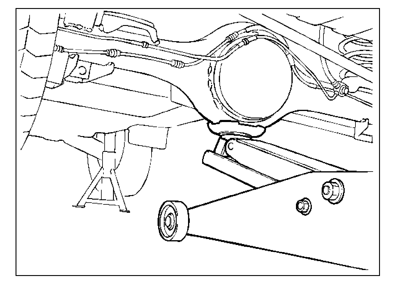 * Position the chassis stands at the bottom of the rear axle case.