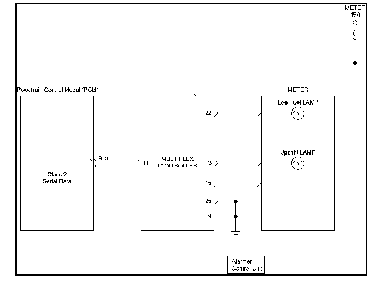 The lamp is controlled by the Power Train Control Module (PCM) and the Multiplex Controller, it is turned "ON" by grounding in the Multiplex Controller.