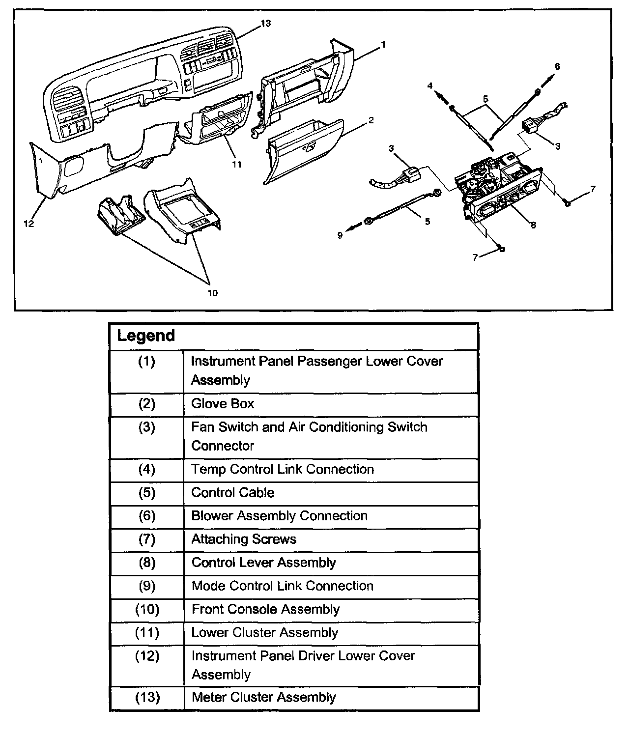 6. Remove instrument panel driver lower cover assembly.