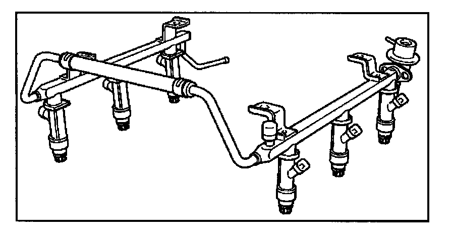 The fuel rail is mounted to the top of the engine and distributes fuel to the individual injectors. Fuel is delivered to the fuel inlet tube of the fuel rail by the fuel lines. The fuel goes through the fuel rail to the fuel pressure regulator. The fuel pressure regulator maintains a constant fuel pressure at the injectors. Remaining fuel is then returned to the fuel tank.
