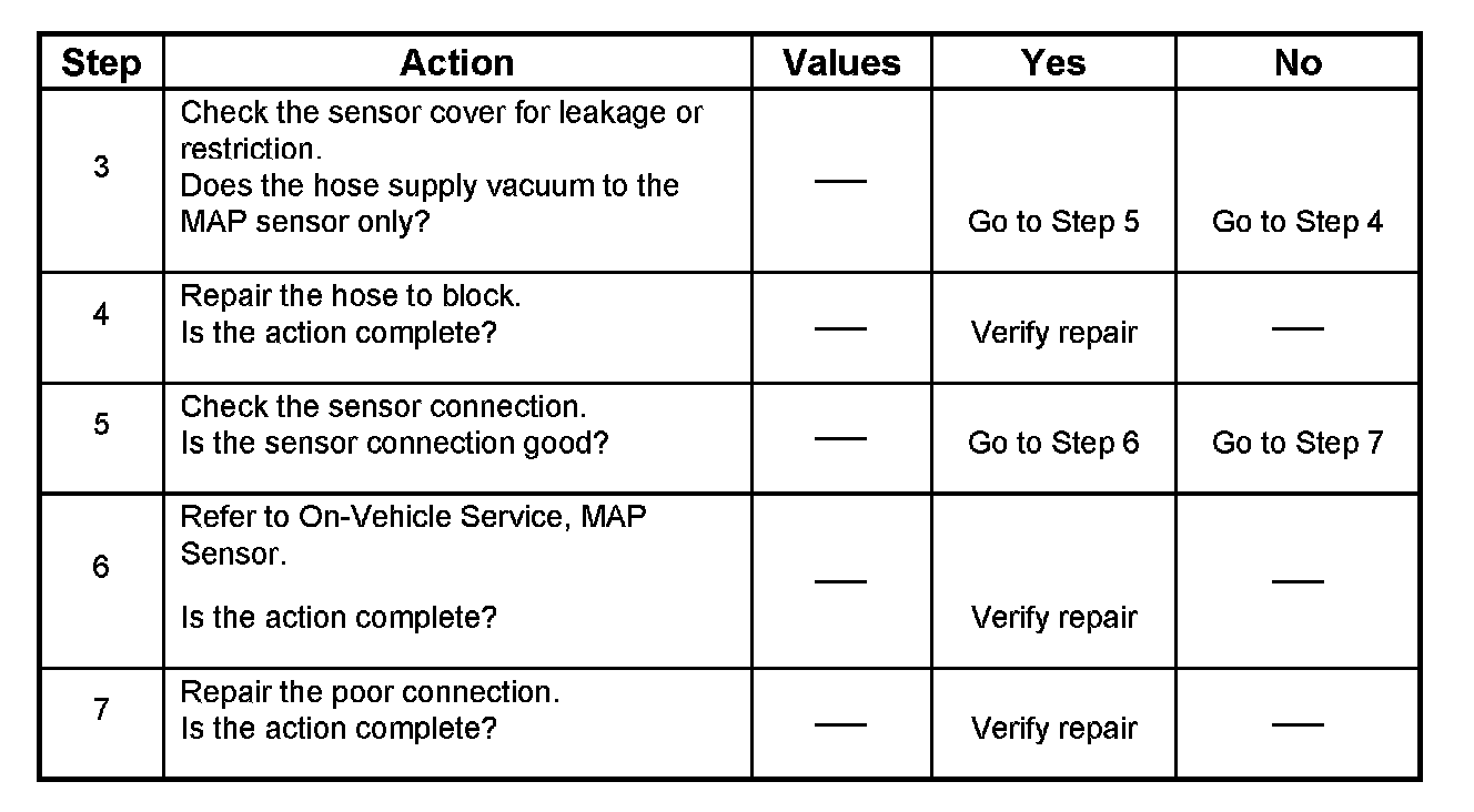 3. Check the vacuum hose to the sensor for leaking or restriction, Be sure that no other vacuum devices are connected to the MAP hose.