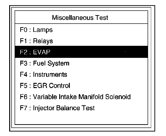 4. Select F2: EVAP Test in the Miscellaneous Test.