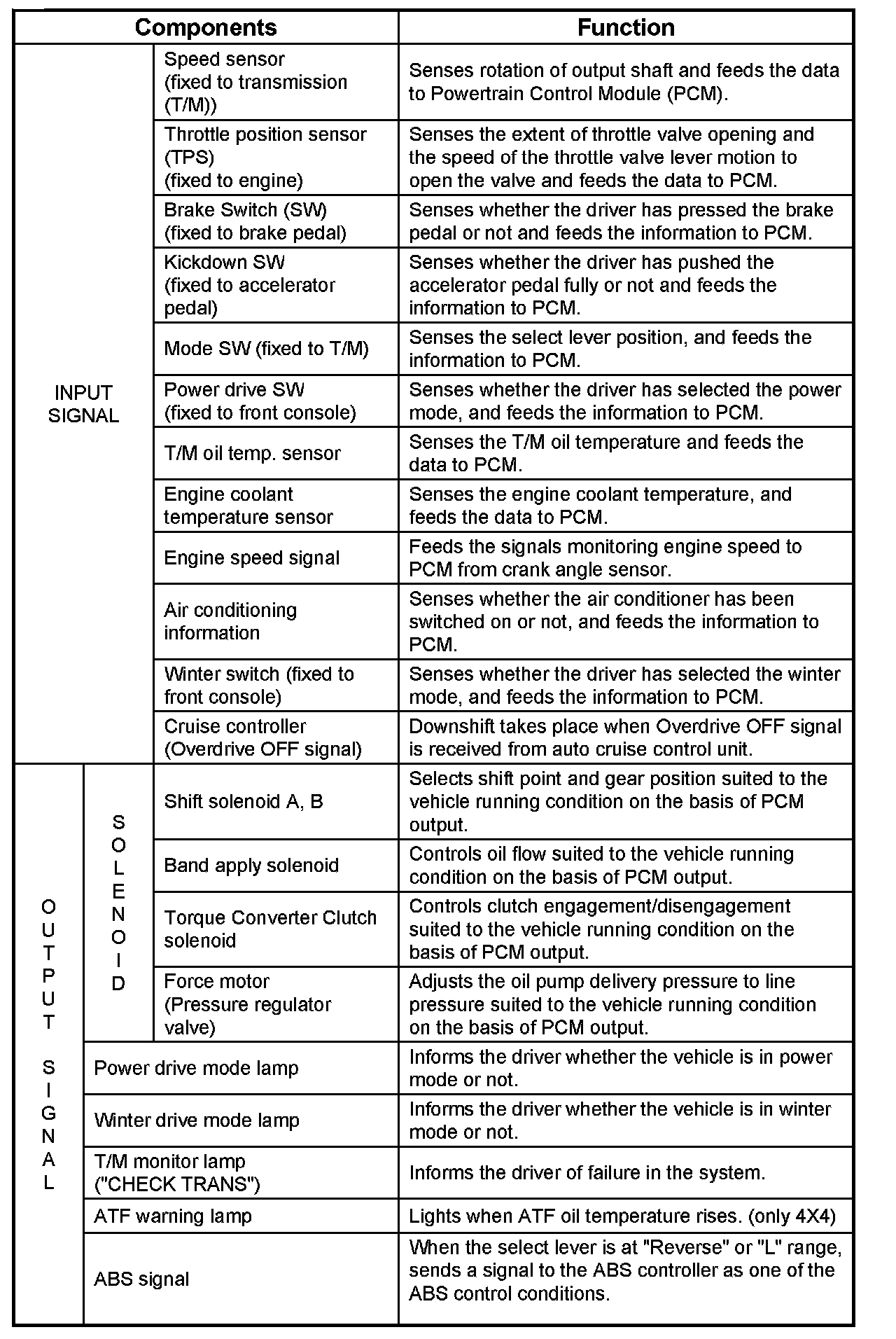 Also, the built-in fail safe function ("backup mode") assures driving performance even if the vehicle speed sensor, throttle signal or any solenoid fails.