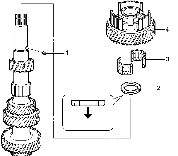 3. Counter 5th gear needle bearing (3).