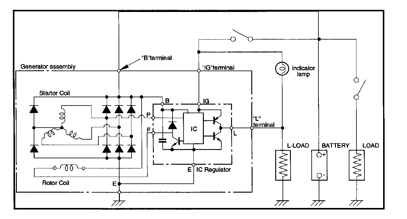 Disconnect wiring connector from generator, and ground the terminal "L" on connector side.