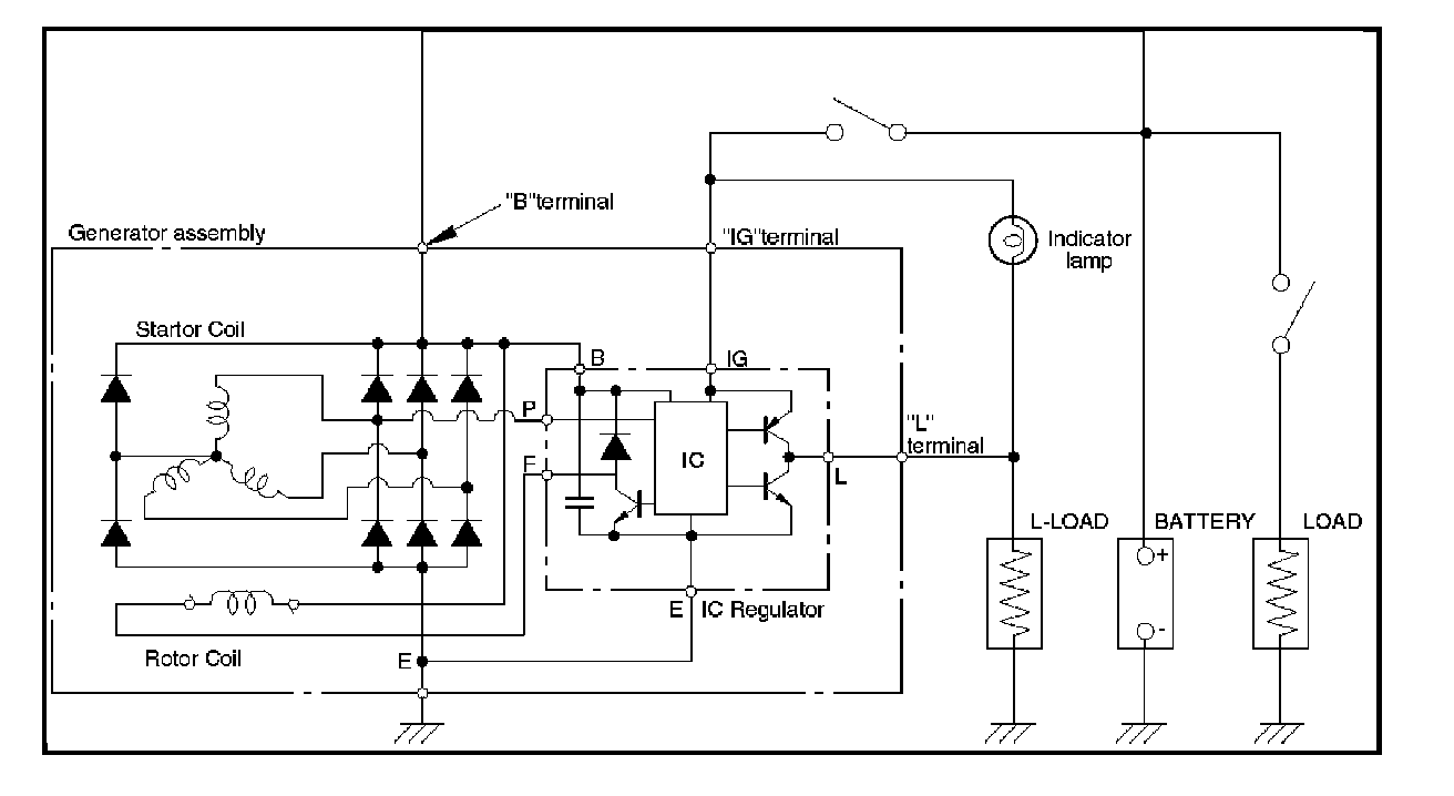 Disconnect wiring connector from generator, and ground the terminal "L" on connector side.