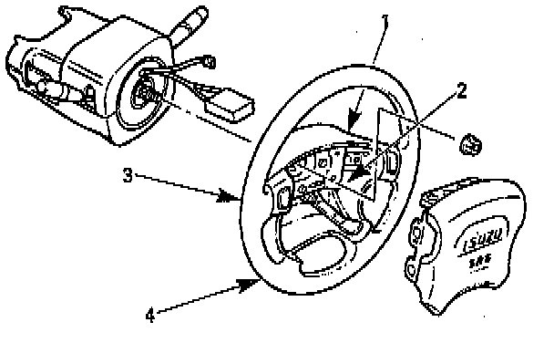 Caution: Never apply force to the steering wheel in direction of the shaft by using a hammer or other impact tools in an attempt to remove the steering wheel. The steering shaft is designed as an energy absorbing unit.