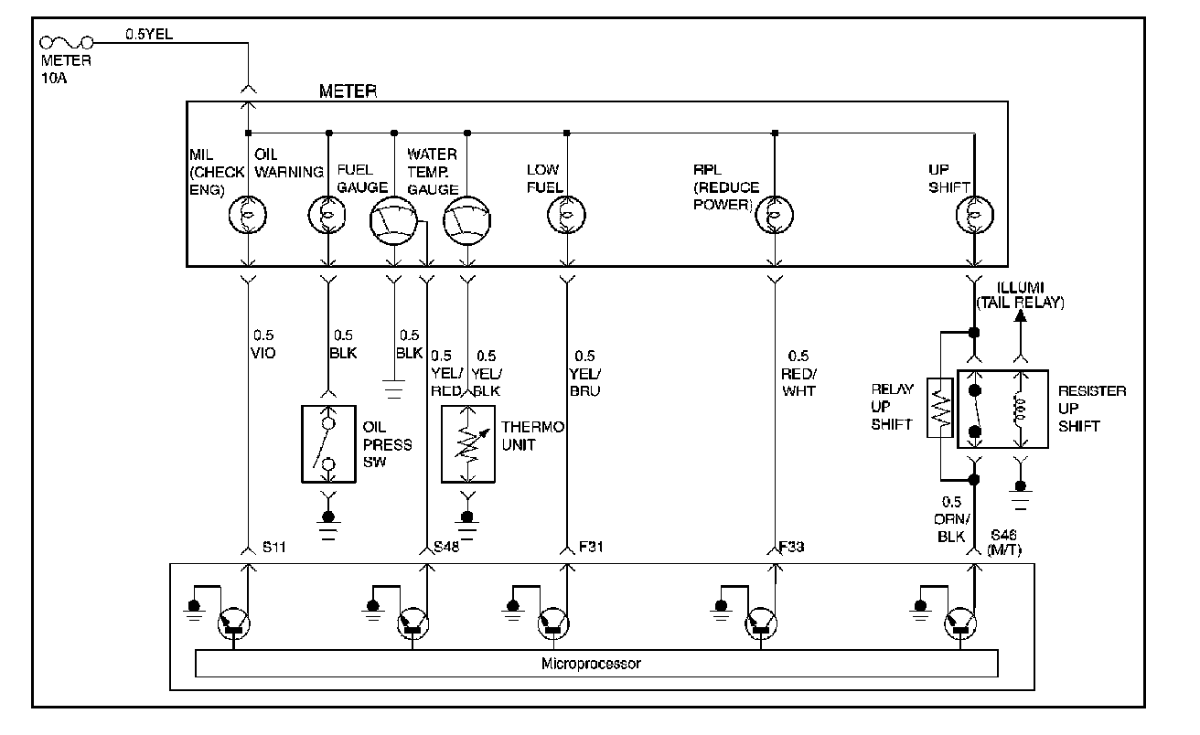 1. This should not turn "ON" the up-shift lamp. If the lamp is "ON", there is a short to ground in BLK or a fault PCM.