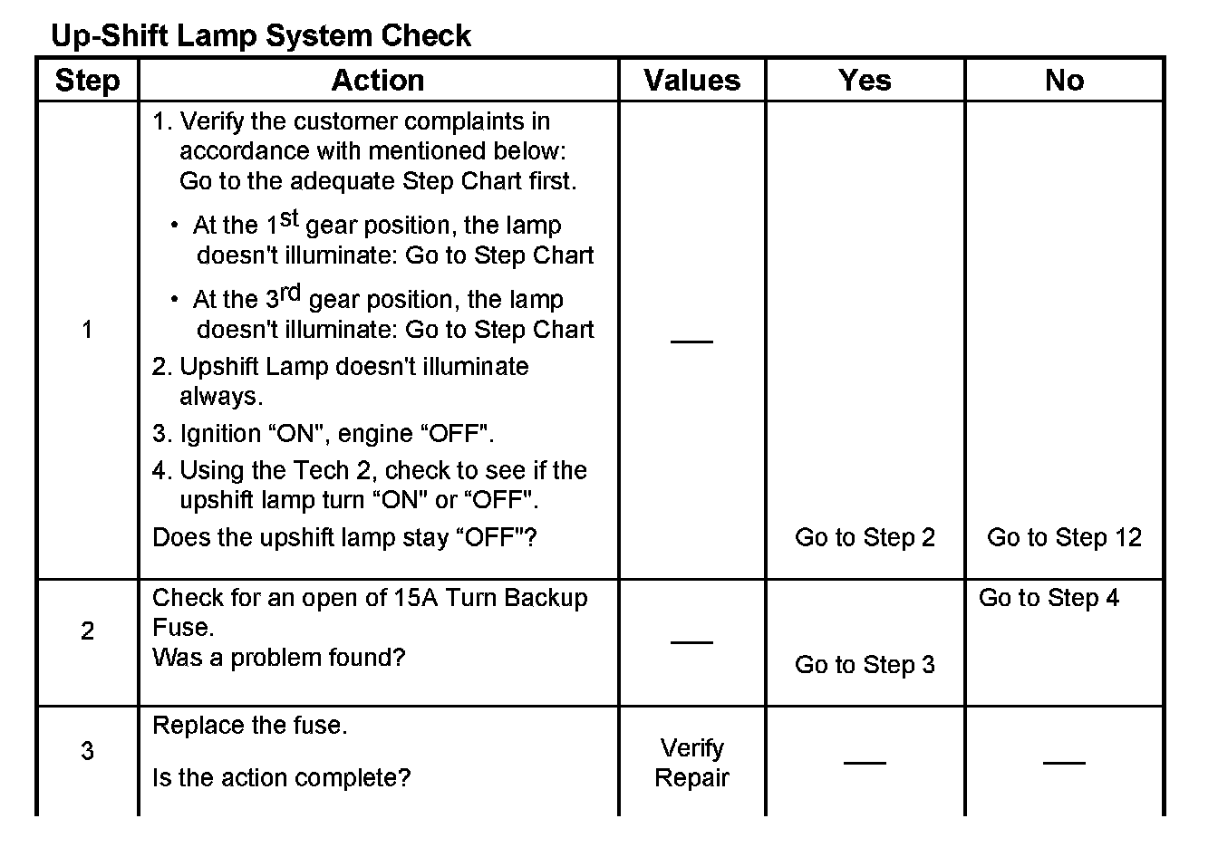 Upshift Lamp System Check (Manual Transmission Only)