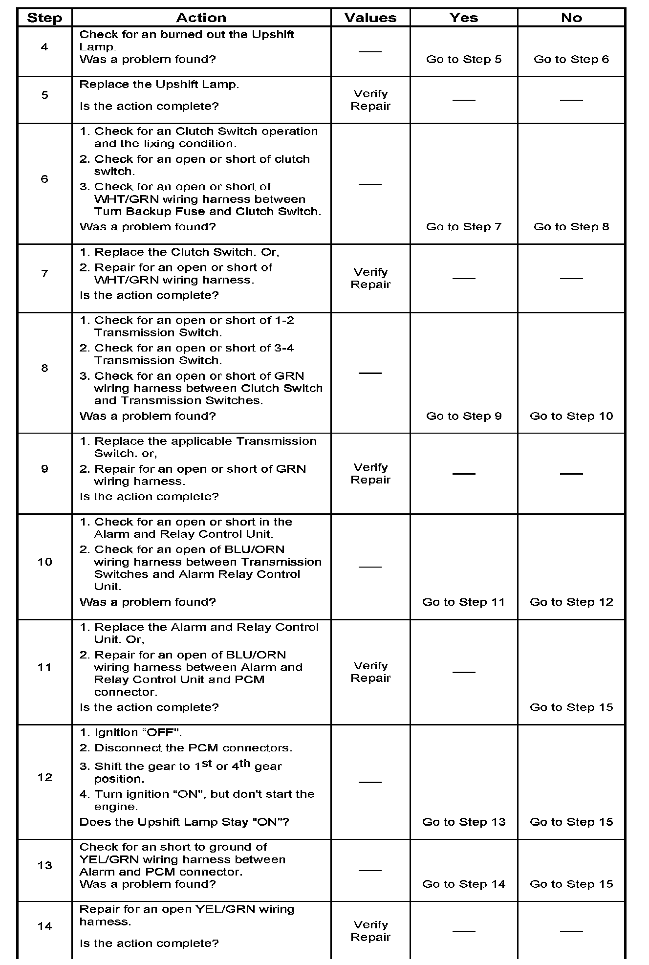 If the up-shift lamp illuminates, then the PCM connector is faulty or PCM does not have the ability to ground the circuit.