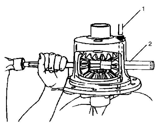 2. Remove Lock pin (1) from differential shaft using a punch.