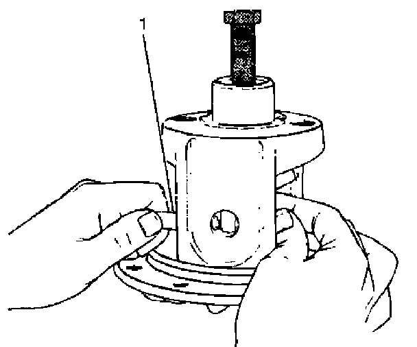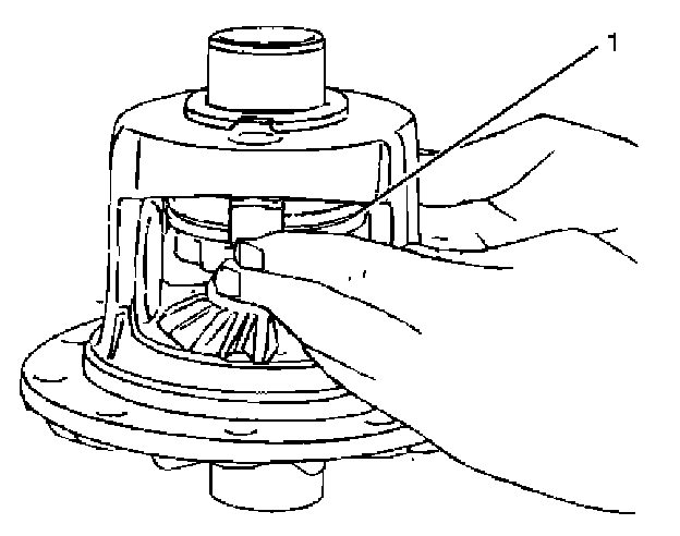 5. Bolt pinion mate gear thrust washers using a shim stock (1) of 0.51 mm (0.020 inch) or equivalent tool to push out washers.