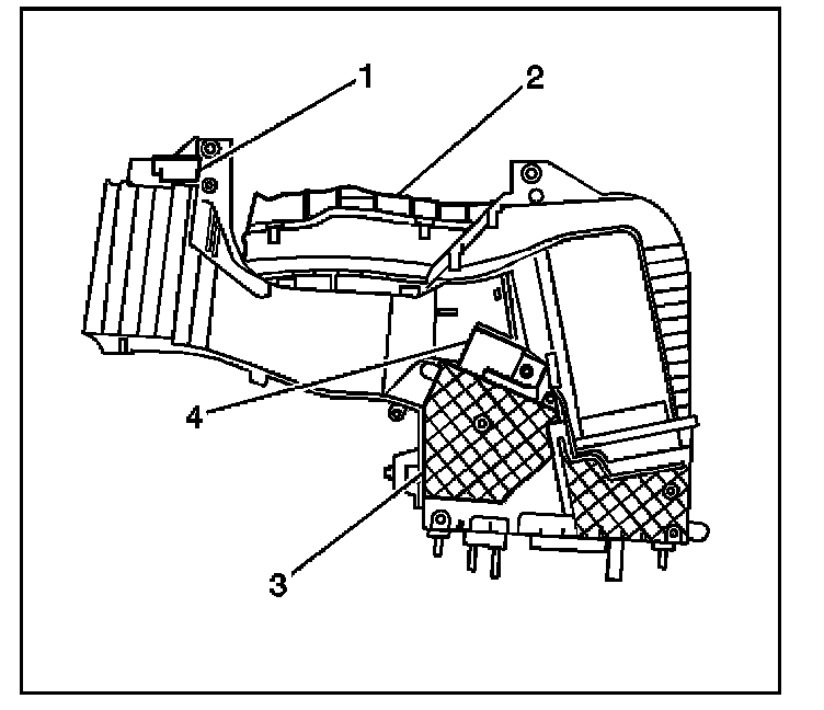 2. Remove the screws from the heater core cover-auxiliary (3).