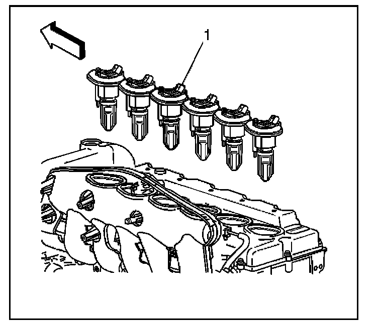 4. Disconnect the ignition coil connectors (1) from the ignition coils.