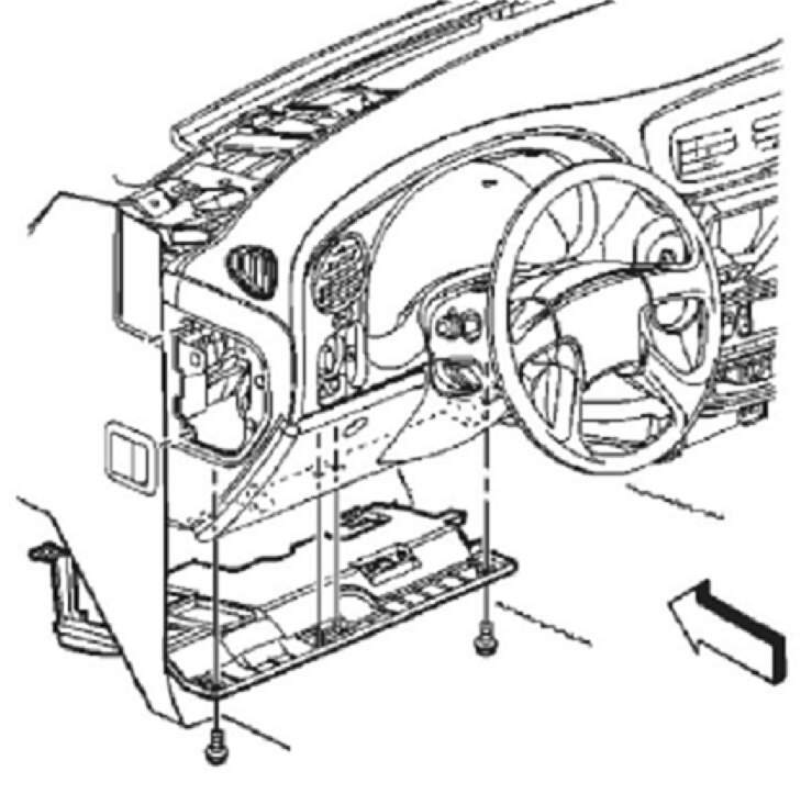 1. Remove the 2 screws that retain the insulator panel to the instrument panel (I/P).