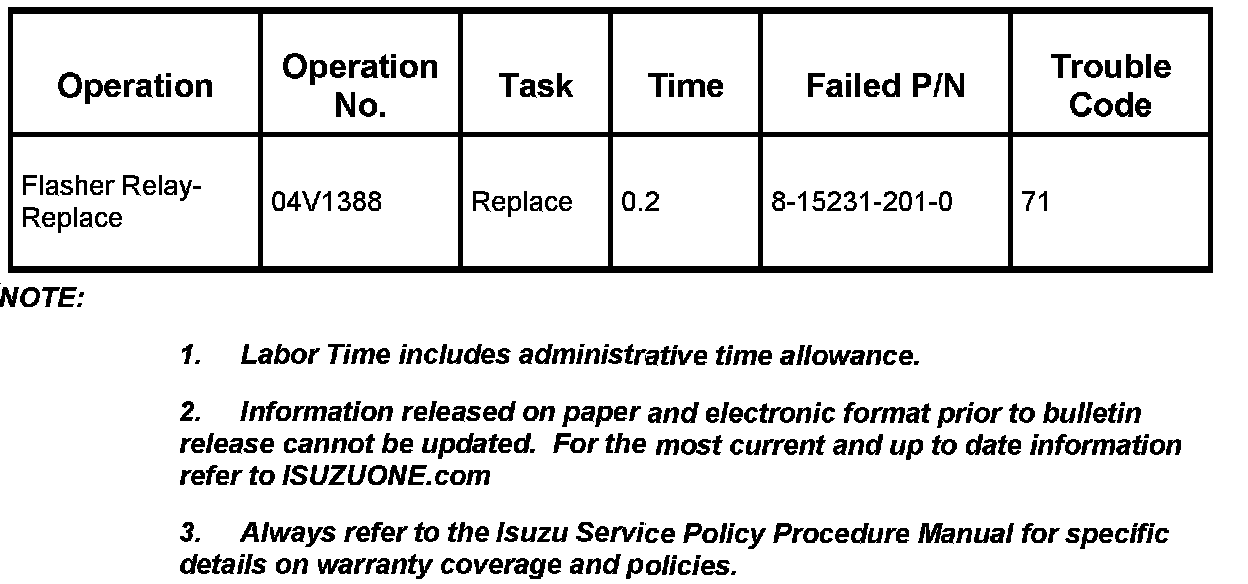 TSB SB05-04-S002Intermittent Incorrect Turn Signal Operation Safety