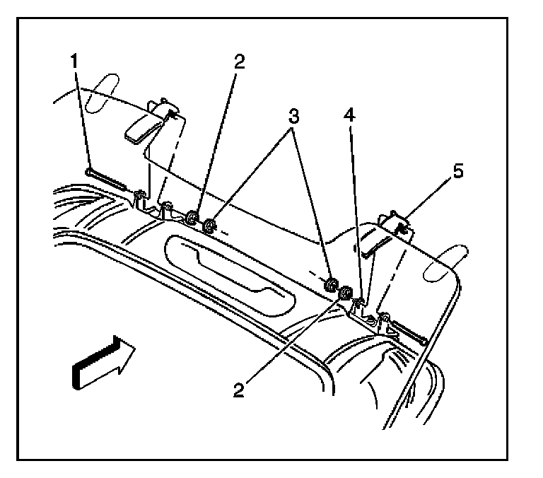 Tighten: Tighten the liftgate window handle bolts (3) to the striker plate to 5 Nm (44 lb in).