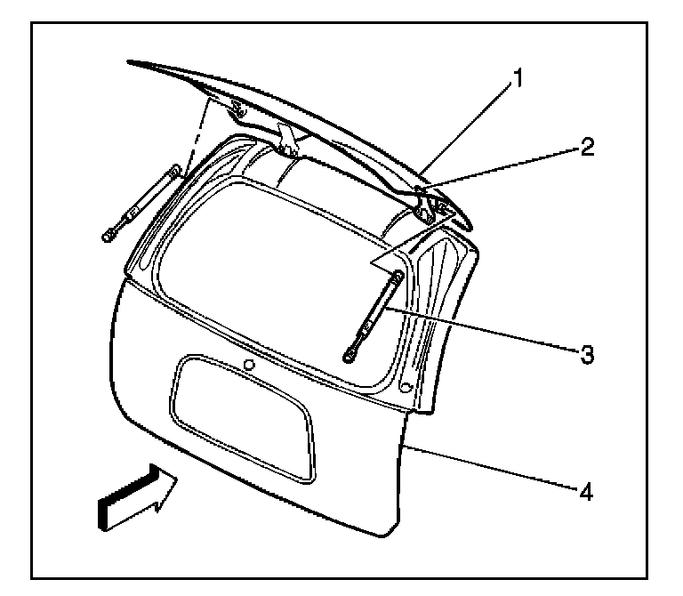 7. With the aid of an assistant remove the struts (3) from the liftgate window.