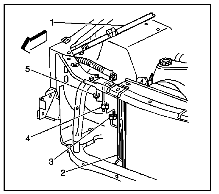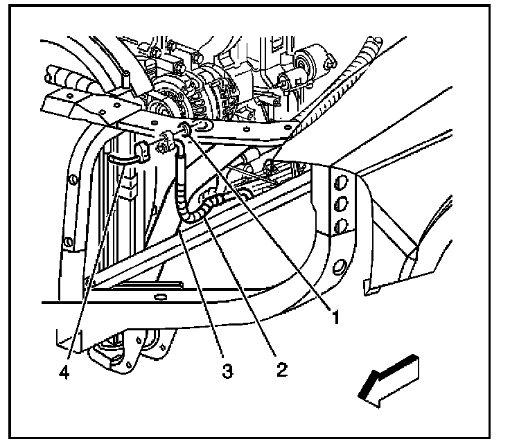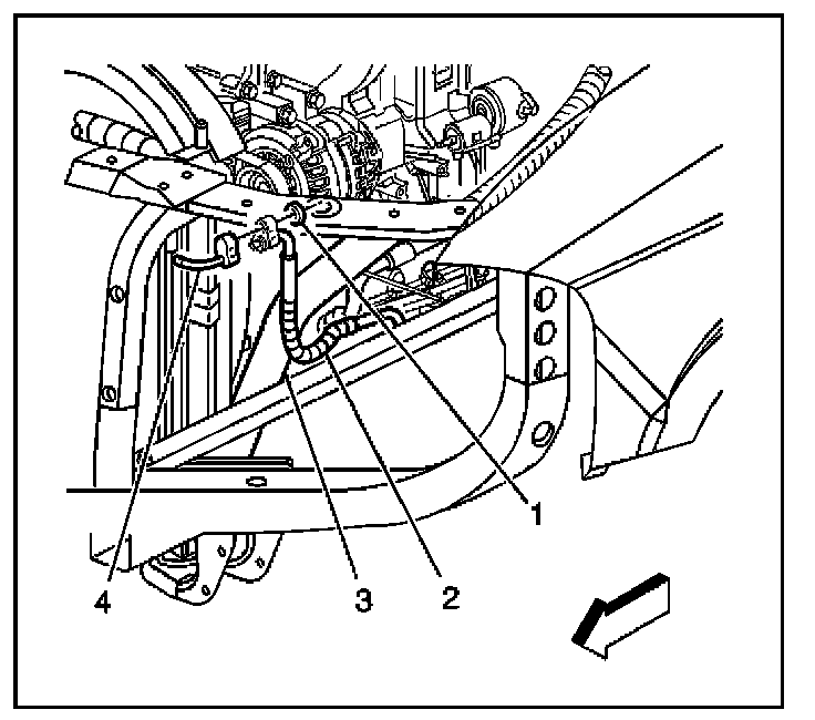 4. Remove the compressor discharge hose (2) from the condenser (4).