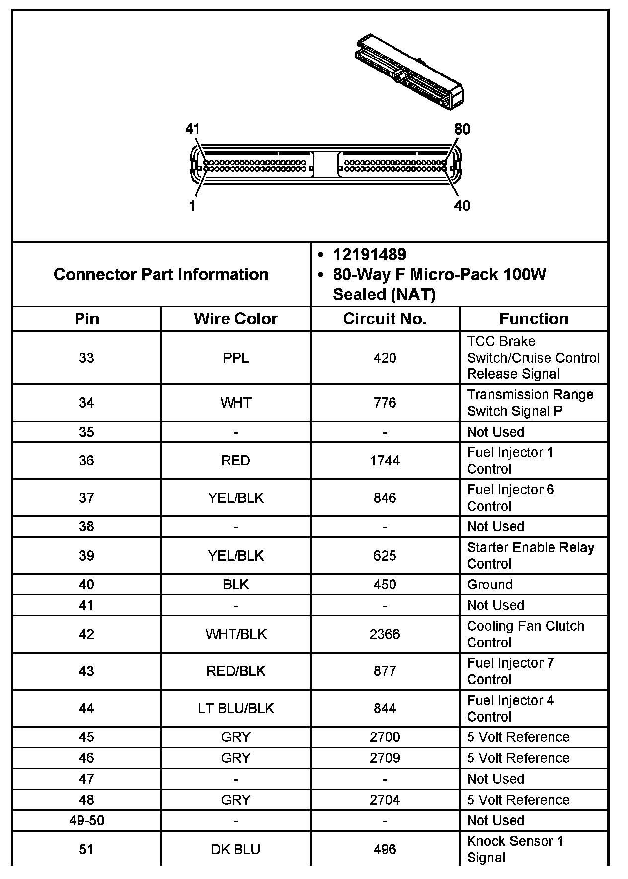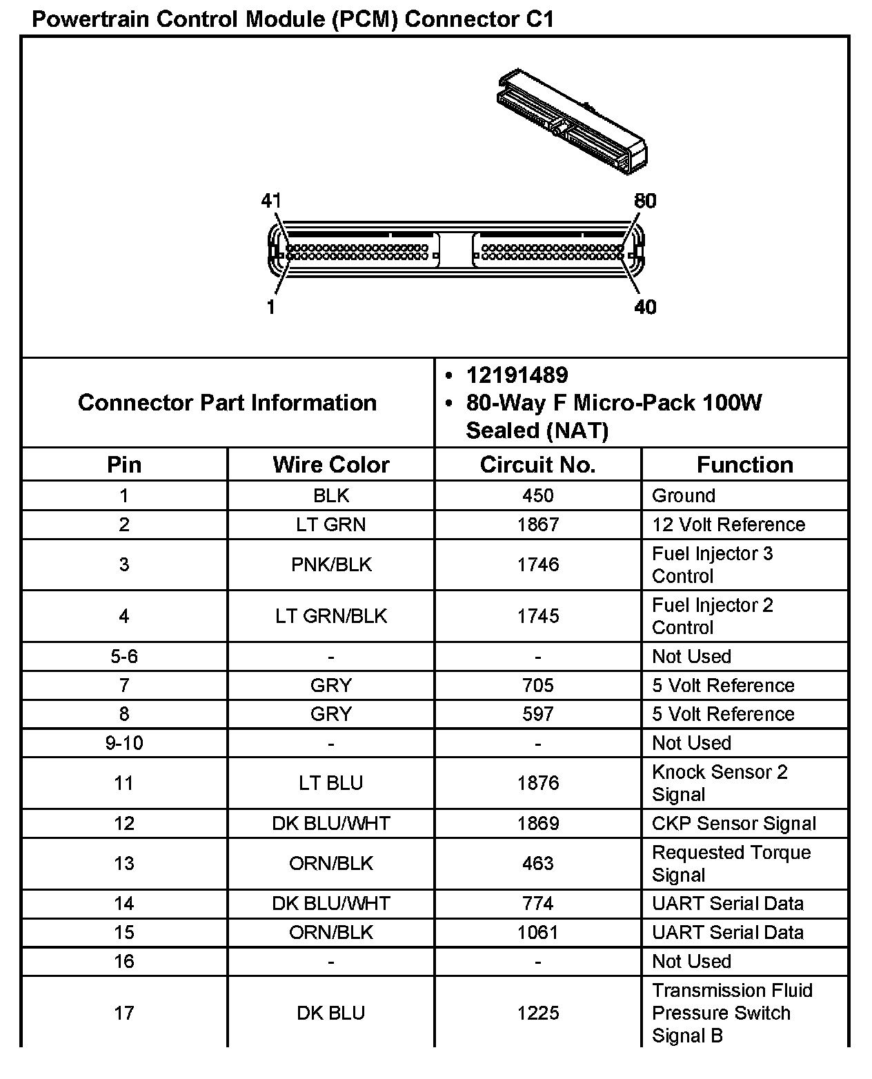 Powertrain Control Module (PCM) Connector C1 Part 5: