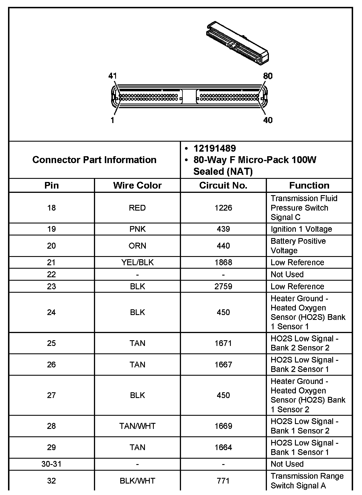 Powertrain Control Module (PCM) Connector C1 Part 2: