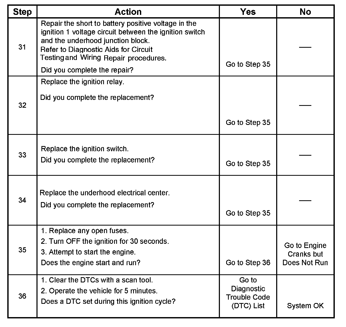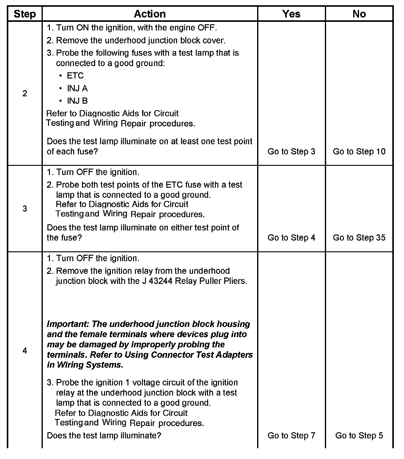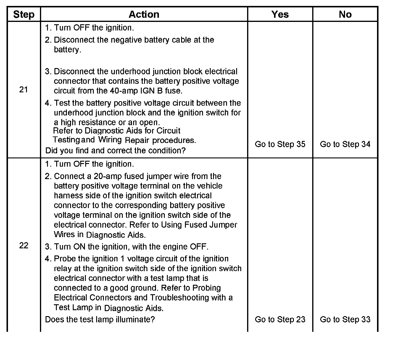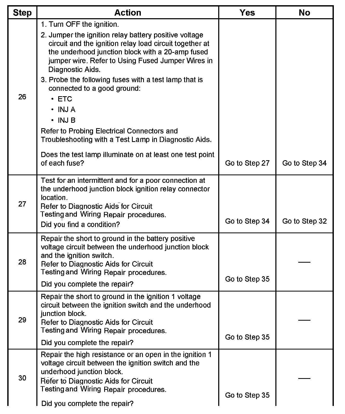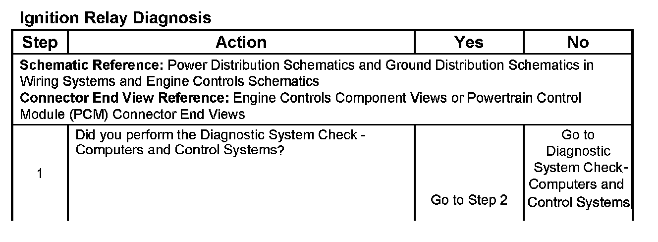 The ignition relay table assumes that the vehicle battery is fully charged. Refer to Battery Inspection/Test in Starting and Charging.