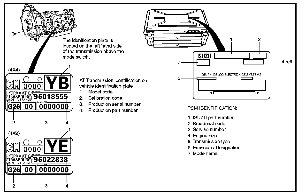 Automatic: Stamped on the identification plate, located on the left side of the transmission above the mode switch.