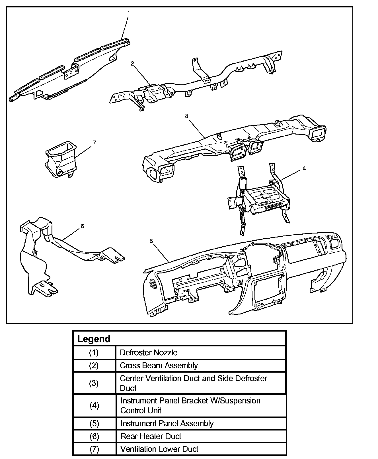 Rear Heater Duct, Defroster Nozzle, Ventilation Duct And Associated Parts: