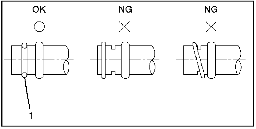 O-rings (2) must be fitted in the groove (1) of refrigerant line.