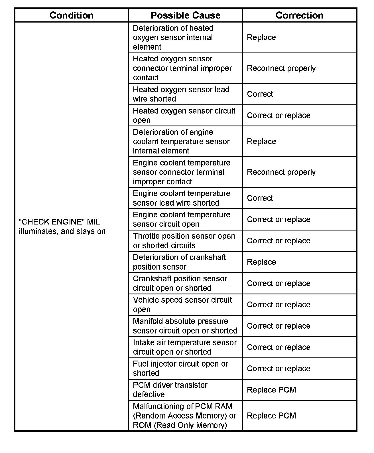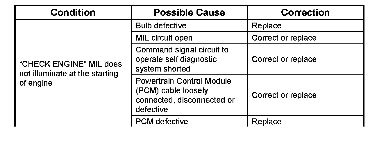 Malfunction Indicator LampThe instrument panel "CHECK ENGINE" Malfunction Indicator Lamp (MIL) illuminates by self diagnostic system when the system checks the starting of engine, or senses malfunctions.
