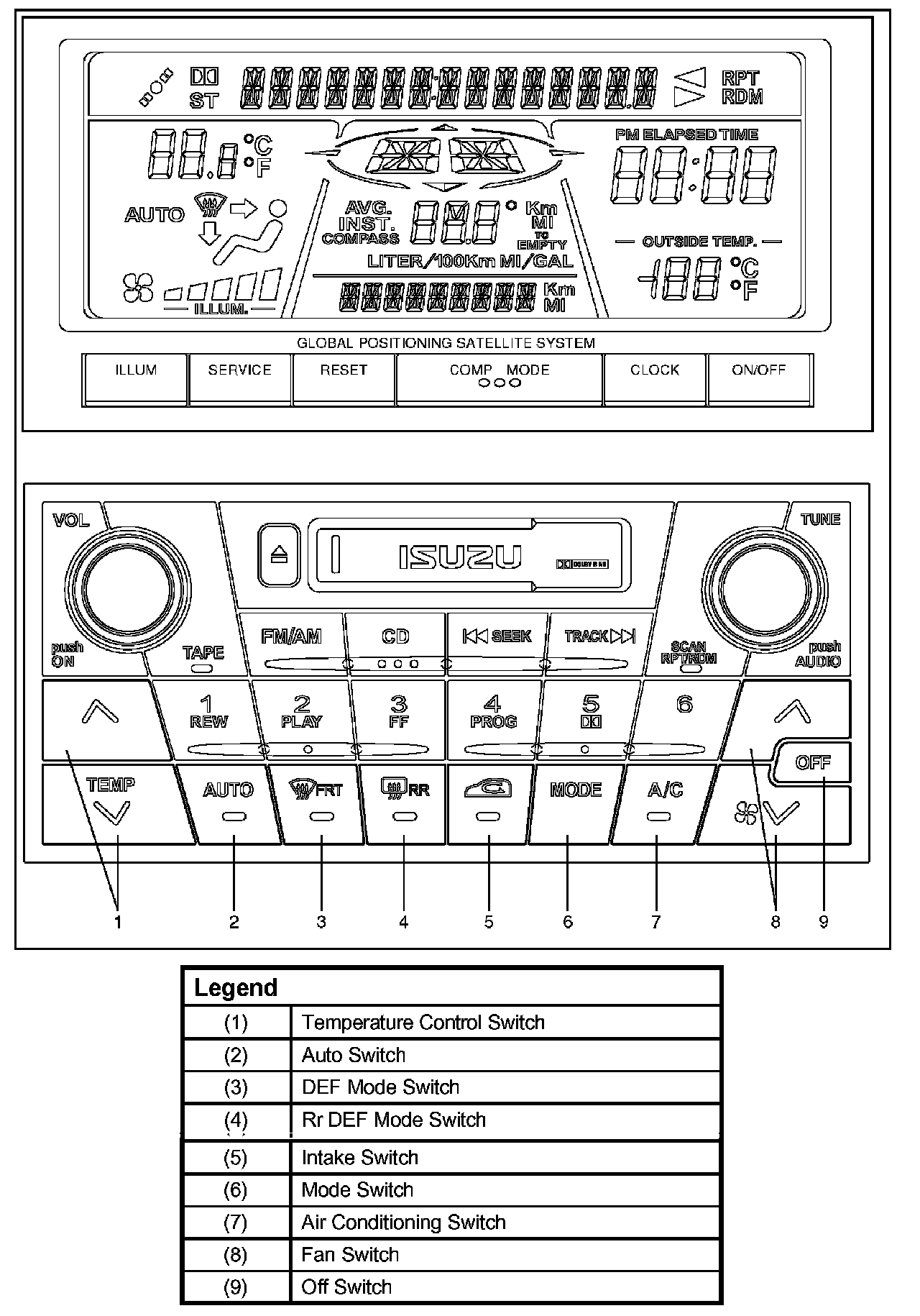 Current switch positions are stored in memory when the ignition switch is turned off. When the ignition switch is turned on again, the switches automatically return to the position they were in when the ignition switch was turned off. This simplifies the restarting procedure.