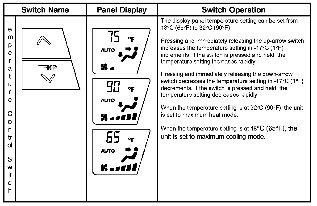 Moving the switch to the 18 °C (65 °F) position provides maximum cooling. Moving the switch to the 32 °C (90 °F) position provides maximum heating.