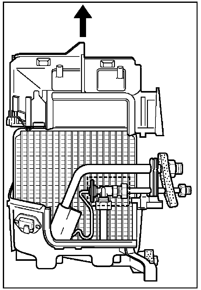 9. Apply an adhesive to the parting face of the lining when assembling the evaporator assembly.