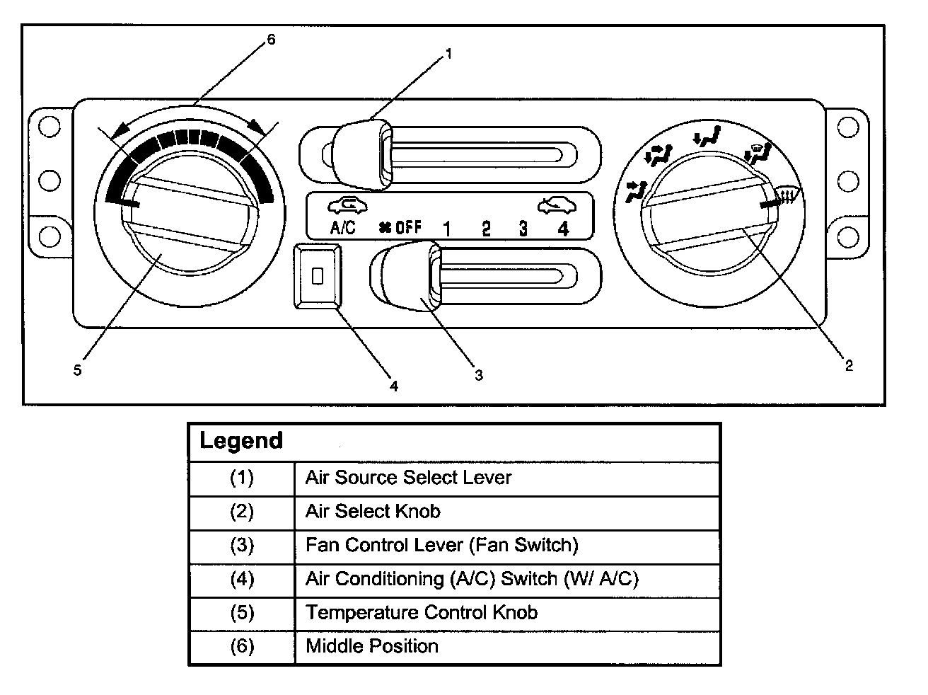 Placing the knob in a intermediate position will cause a lesser or greater amount air to reach the heater core. In this mode the passenger compartment temperature can be regulated.