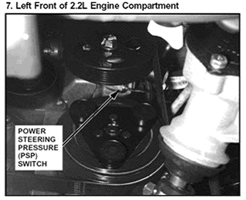 Possible metal debris in power steering pressure switch, located in power steering pump, or short to ground in the power steering pressure switch circuit.