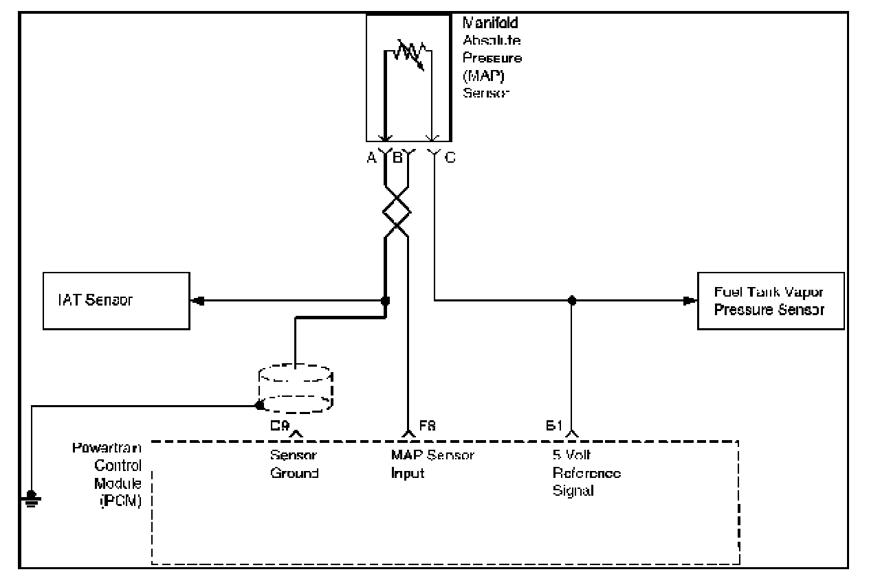 The manifold absolute pressure (MAP) sensor measures the changes in the intake MAP which result from engine load (intake manifold vacuum) and engine speed changes; and converts these into a voltage output. The powertrain control module (PCM) sends a 5-volt reference voltage to the MAP sensor. As the MAP changes, the output voltage of the sensor also changes. By monitoring the sensor output voltage, the PCM knows the MAP. A lower pressure (low voltage) output voltage will be about 1-2 volts at idle. Higher pressure (high voltage) output voltage will be about 4-4.8 volts at wide open throttle. The MAP sensor is also used, under certain conditions, to measure barometric pressure, allowing the PCM to make adjustments for different altitudes. The PCM uses the MAP sensor to diagnose proper operation of the EGR system, in addition to other functions.