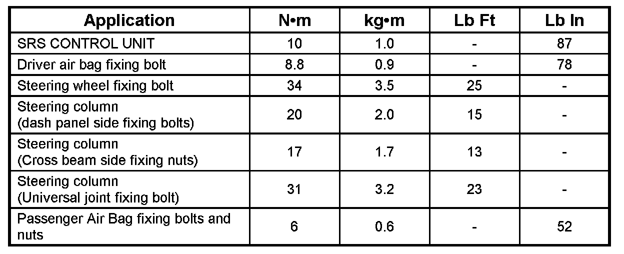 Fastener Tightening Specification: