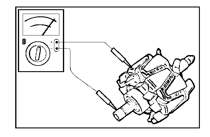 1. Measure the resistance between each diode terminal and aluminum diode fin in forward and reverse directions with the connection of the tester leads switched. The diodes are normal if resistance is nearly zero ohms in one direction and is infinitely high in the other direction.