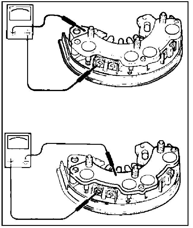 2. If a diode has no resistance or equal resistance in both directions, it is defective and should be replaced together with the holder.